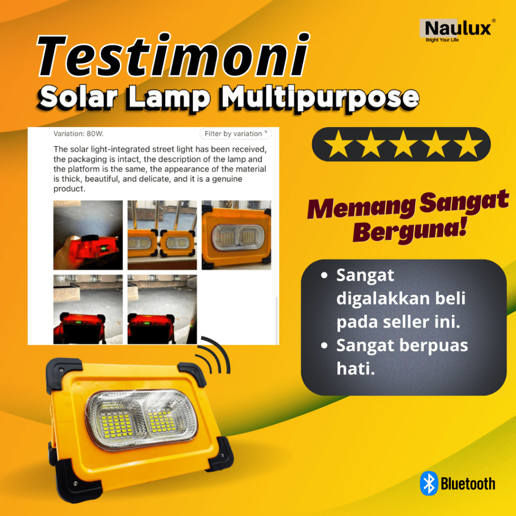 Ini feedback Kenapa Perlu Dapatkan Naulux Lampu Solar Bluetooth Multipurpose